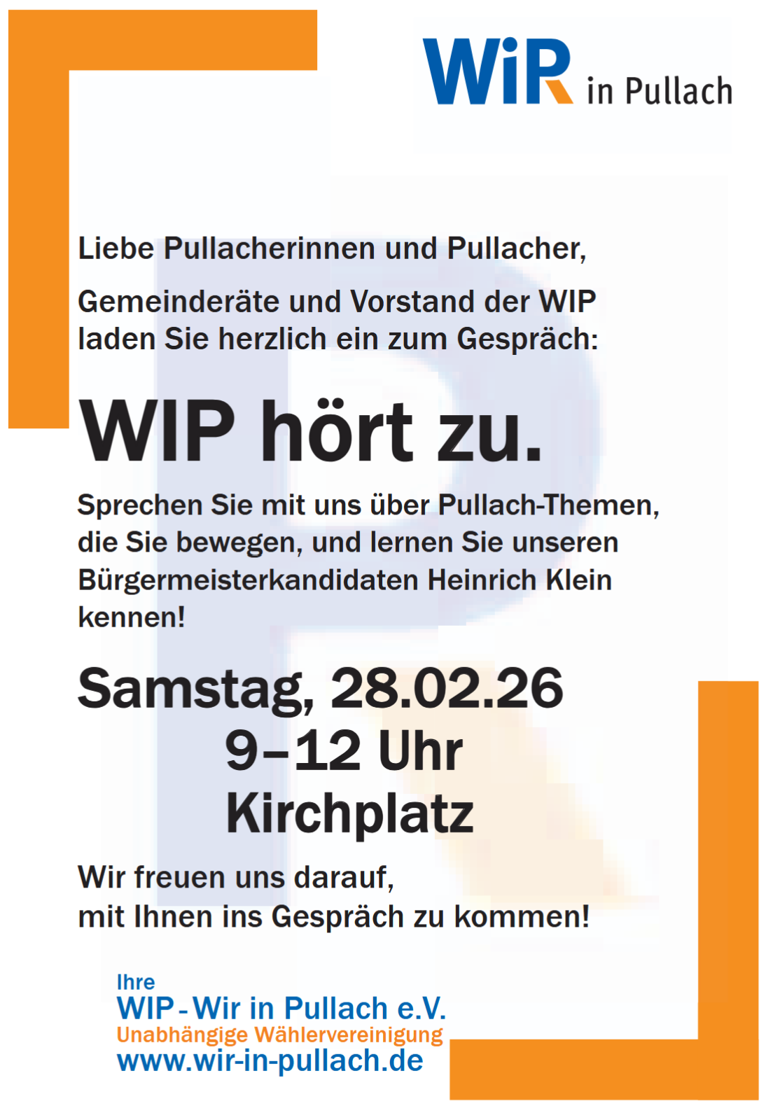 Interessierte Pullacher können ihre Fragen an die Kandidaten bis zum 22.Februar via email an die Moderatorin senden (lisa.wimmer@sz.de). Die Moderatorin wird die Fragen vorab allen Kandidaten zuleiten, so dass sie sich in fairer Weise darauf vorbereiten können. Einlass: 18:00 Uhr, begrenztes […]