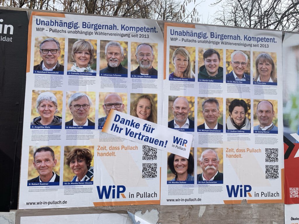 Die Wähler haben gesprochen – und es freut uns, dass die älteste und einzige unabhängige Wählervereinigung in Pullach, die WIP (Wir In Pullach), wieder die drittgrößte Fraktion im Gemeinderat stellen wird. Dafür ein herzliches Dankeschön an unsere Wähler!